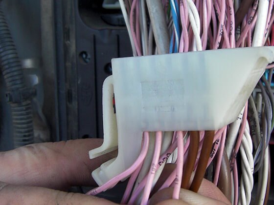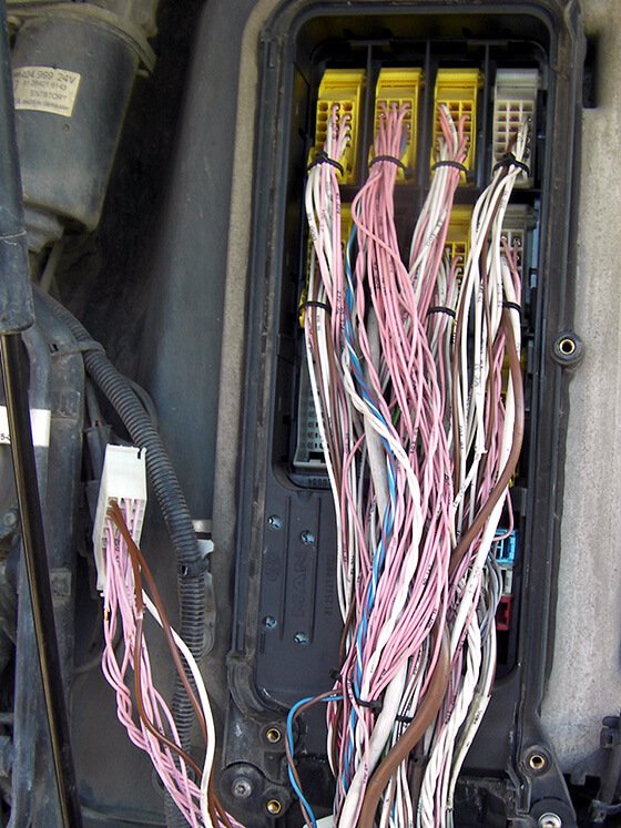 Remove the cover from the junction box on the left (driver’s side of the vehicle) and find the connector (see the photo). There are two thick brown wires on the connector – this is GROUND wires. Connect GROUND firstly. Do not connect other emulator wires if the ground wire is not connected. It is necessary for safety reasons.